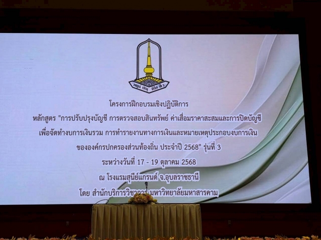 การปรับปรุงบัญชี การตรวจสอบสินทรัพย์ ค่าเสื่อมราคาสะสม และการปิดบัญชีขององค์กรปกครองส่วนท้องถิ่น รุ่นที่3 จ.อุบลฯ 17-19ต.ค.68
