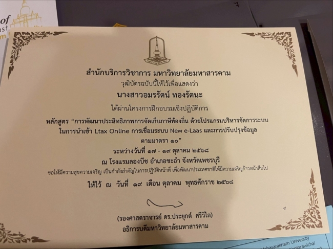 จัดเก็บภาษีท้องถิ่น ด้วยโปรแกรมบริหารจัดการระบบในการนำเข้า Ltax Online รุ่นที่ 2 จ.เพชรบุรี 17 - 19 ต.ค.68
