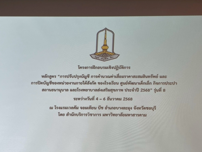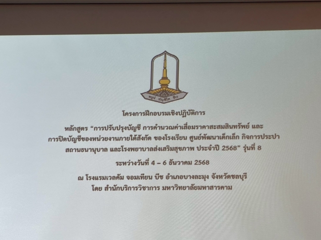 การปรับปรุงบัญชี การคำนวณค่าเสื่อมราคาสะสมสินทรัพย์ และการปิดบัญชีของหน่วยงานภายใต้สังกัดฯ รุ่นที่ 8 จ.ชลบุรี 4-6 ธ.ค.68