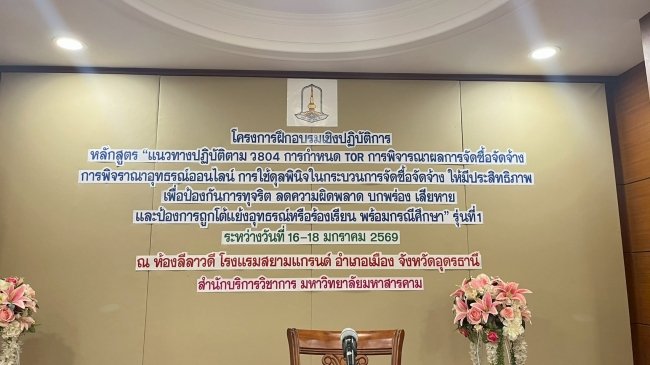 หลักสูตร: แนวทางปฏิบัติตาม ว๘๐๔ การกำหนด TOR การพิจารณาผลการจัดซื้อจัดจ้าง รุ่นที่1 จ.อุดรธานี 16-18 ม.ค.69